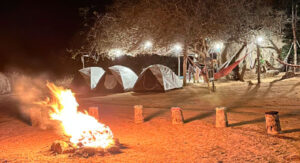 A noite serão os momentos em que iremos compartilhar juntos nossas histórias, e aproveitar o momento para criar conexões em volta da fogueira. Todas as hospedagens tem locais de convivência, para realizarmos as trocas.