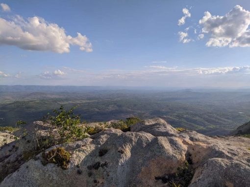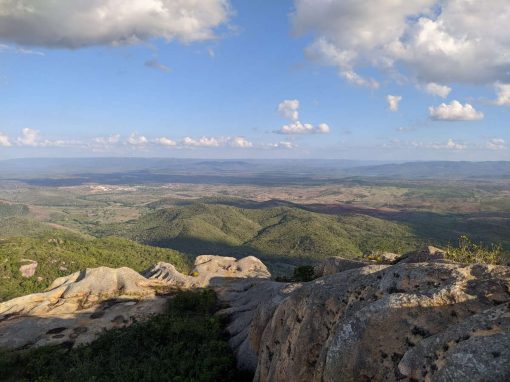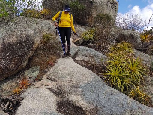 • Terreno pedregoso, irregular, pequeno obstáculos, descida e subida de serra e lajedos pelo caminho em vegetação de caatinga.